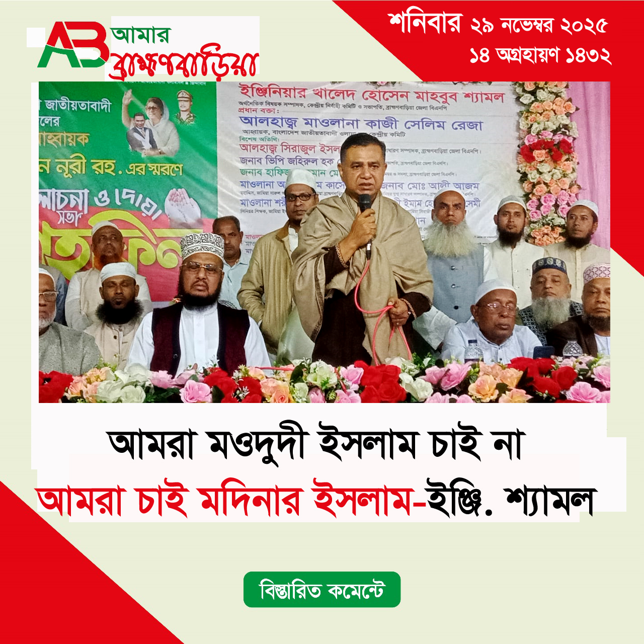 আমাদের এখন ফ্যাসিস্টের বিরুদ্ধে লড়ত হবে এবং মওদুদী ইসলামের বিরুদ্ধেও লড়তে হবে। জামায়াত ইসলাম গ্রামে গ্রামে মহিলাদের পাঠিয়ে মা বোনদের ধোকা দিচ্ছে। মা বোনদের বলছে, তারা বেহেশতের চাবি নিয়ে এসেছে। মওদুদী ইসলাম শুরু হয়েছে ১৯৪১ সনে আর মদিনার ইসলাম শুরু হয়েছে দেড় হাজার বছর আগে। তারা ৪১ সালের মওদুদী ইসলাম নিয়ে ফতোয়া দেয়া শুরু করেছে। তাদের বিরুদ্ধে আমাদের সকলের সজাগ থাকতে হবে, সতর্ক থাকতে হবে। সেজন্য আপানারা গ্রামে গঞ্জে গিয়ে গ্রামের মানুষদেরকে বোঝাতে হবে, সবাইকে বোঝাতে হবে। ইতিমধ্যে আমাদের ব্রাহ্মণবাড়িয়ার হেফাজতের মুরুব্বিরাও আমাদের সাথে একমত হয়েছেন। অনুষ্ঠানের শুরুতে কোরআন থেকে তিলাওয়াত করেন মাওলানা কাজী নাজিম উদ্দীন।