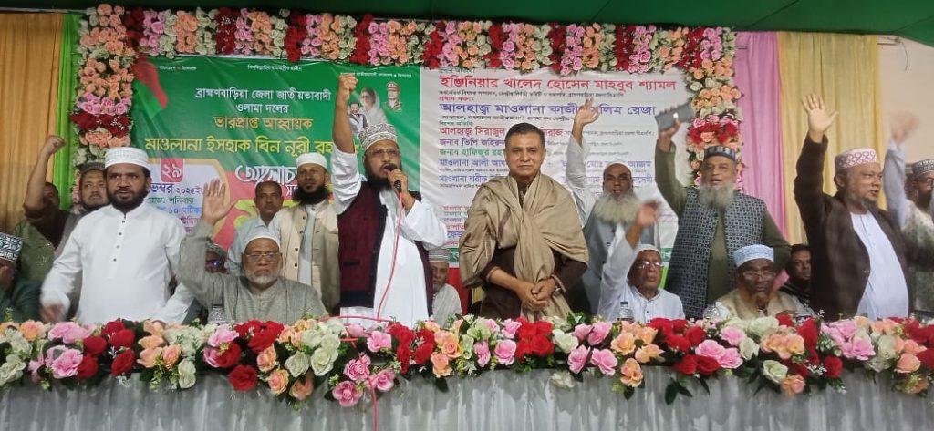 শনিবার ২৯ নভেম্বর দুপুর ১২টায় স্থানীয় সুর স¤্রাট দি আলাউদ্দিন সঙ্গীতাঙ্গনের সরোদ মঞ্চে ব্রাহ্মণবাড়িয়া জেলা ওলামা দলের ভারপ্রাপ্ত আহবায়ক হাফেজ মাওলানা রশিদ আহমেদের সভাপতিত্বে ও সদর উপজেলা ওলামা দলের আহবায়ক মাওলানা ইয়াছিনের পরিচালনায় প্রধান অতিথি ছিলেন ব্রাহ্মণবাড়িয়া জেলা বিএনপির সভাপতি ও কেন্দ্রীয় বিএনপির অর্থনৈতিক বিষয়ক সম্পাদক ইঞ্জিনিয়ার খালেদ হোসেন মাহবুব শ্যামল, প্রধান বক্তা ছিলেন বাংলাদেশ জাতীয়তাবাদী ওলামা দলের কেন্দ্রীয় কমিটির আহবায়ক মাওলানা কাজী সেলিম রেজা।