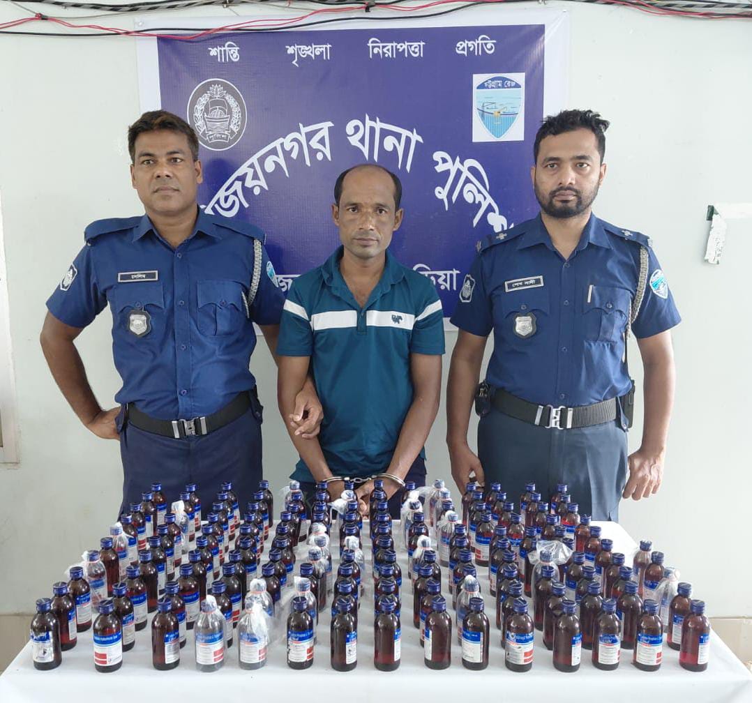 আমার ব্রাহ্মণবাড়িয়া: ব্রাহ্মণবাড়িয়ার বিজয়নগরে ১৪৫ বোতল স্কপ সিরাপসহ একজন মাদক ব্যবসায়ী আটক।