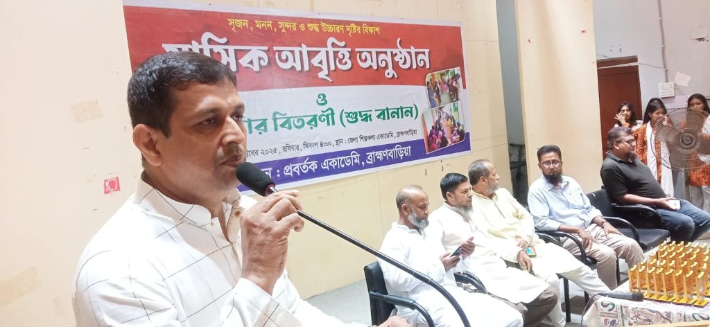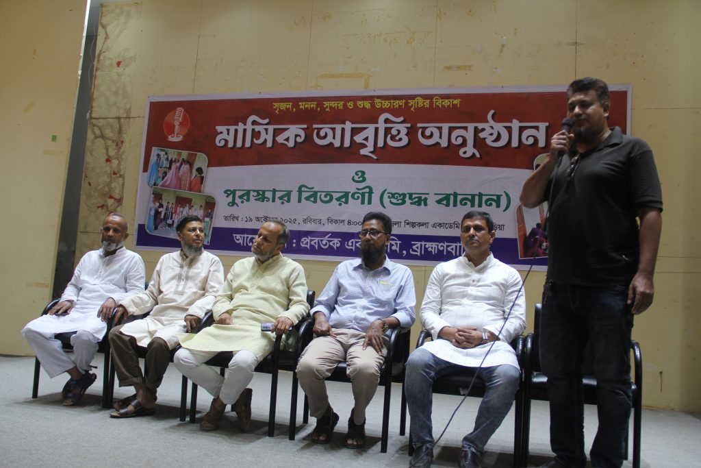 ১৯ অক্টোবর ২০২৫ রবিবার বিকাল চারটায় ব্রাহ্মণবাড়িয়া জেলা শিল্পকলা একাডেমি মিলনায়তনে প্রবর্তকের