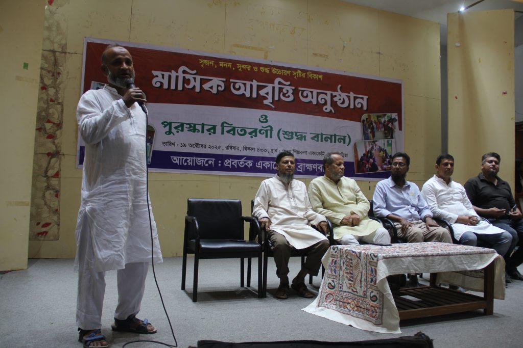 আয়োজন করেছে। যা আমাদের ভবিষ্যৎ প্রজন্মের জন্য খুবই গুরুত্বপূর্ণ। আমরা চাই ব্রাহ্মণবাড়িয়ার সকল শিক্ষা প্রতিষ্ঠানে শুদ্ধ বানানে শিক্ষার্থীরা আরো উৎসাহী হয়ে উঠবে।