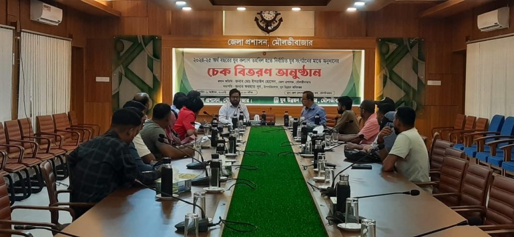মৌলভীবাজার প্রতিনিধিঃ মৌলভীবাজার, ২১ অক্টোবর ২০২৫ : মৌলভীবাজারে ২০২৪-২০২৫ অর্থবছরের যুব কল্যাণ তহবিল হতে নির্বাচিত ১৪টি যুব সংগঠনের মাঝে অনুদানের চেক বিতরণ করা হয়েছে।