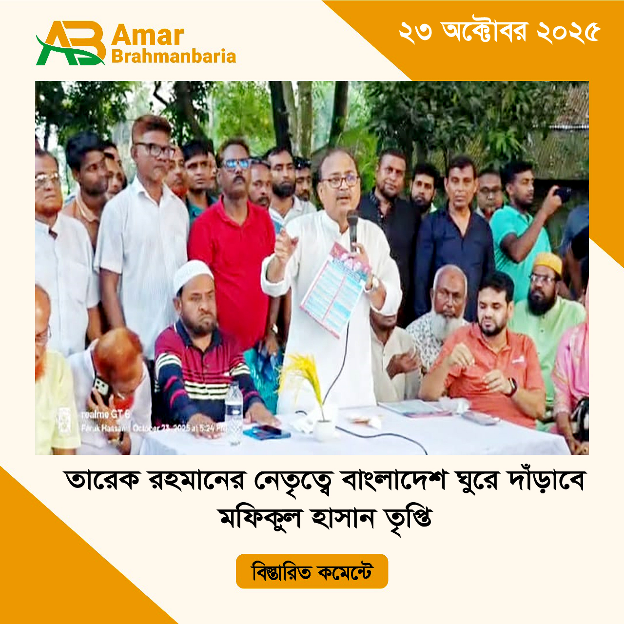 বেনাপোল (শার্শা, যশোর) প্রতিনিধিঃ বিএনপির সাবেক দপ্তর সম্পাদক ও সাবেক এমপি মফিকুল হাসান তৃপ্তি বলেন, তারেক রহমানের নেতৃত্বে বাংলাদেশ অচিরেই ঘুরে দাঁড়াবে। তারেক রহমান খুব তাড়াতাড়ি দেশে ফিরবেন। আমরা ধানের শীষের প্রতীক নিয়ে ঐক্যবদ্ধভাবে কাজ করবো। আমরা তাকে বাংলাদেশের আগামী প্রধানমন্ত্রী হিসেবে দেখতে চাই। তিনি বলেন, একটি মৌলবাদী গোষ্ঠী দেশবিরোধী ষড়যন্ত্রে লিপ্ত রয়েছে। তারা ছদ্মবেশে ধর্মের অপব্যবহার করে জনগণকে বিভ্রান্ত করছে। এই ষড়যন্ত্রের বিরুদ্ধে সবাইকে সজাগ থাকতে হবে।